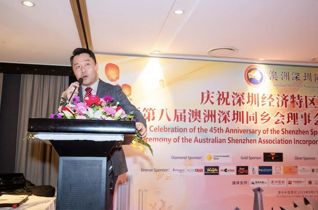 中国驻悉尼总领馆胡阳领事在致辞中高度评价同乡会的工作:“深圳同乡会始终是连接中澳民心的重要桥梁。45年来,深圳从边陲小镇跃升为国际化大都市,‘敢为人先’的精神,也激励着海外游子在异国他乡开拓进取。希望同乡会继续发挥平台作用,促进两国友好。