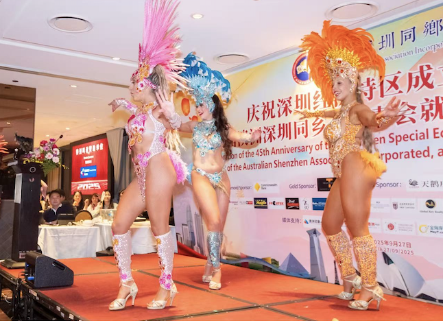 适逢中秋佳节,晚会现场洋溢着浓郁的节日氛围。歌声与现代歌舞轮番登场,Tina Gao的一首《春天的故事》和陈刚老师的《望月》都让人流连忘返,热情的巴西女郎的森巴舞将晚会推向高潮、既有对中华文化的传承,对澳洲多元文化的融合。嘉宾们品尝着定制的“深圳味道”月饼,通过大屏幕回顾深圳45年发展历程以及同乡会自1998年以来的历史发展历程,从“三天一层楼”的“深圳速度”到如今全球科技创新高地的蜕变,引发全场共鸣。