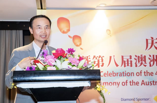 澳洲深圳同乡会杰出终身会员兼乔治河市市议员王斌发言。