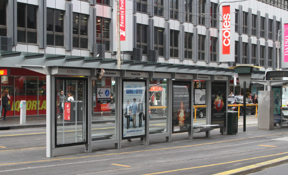 Swanston St各线电车直达墨大、Melbourne Central、Flinders St等站。