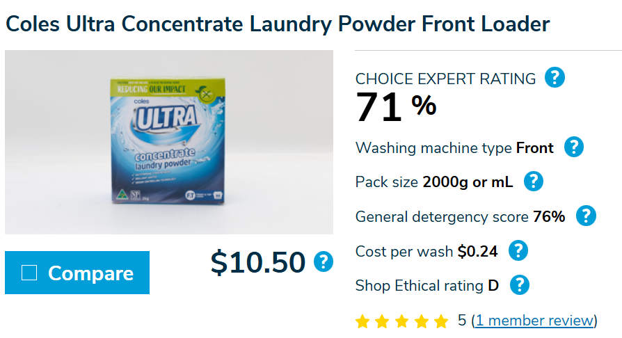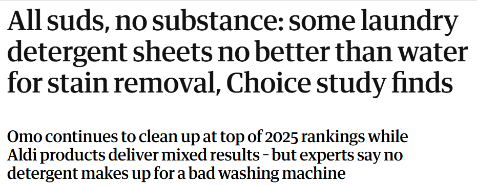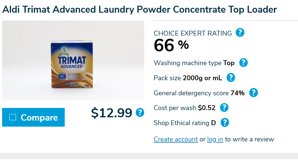 对于追求性价比的家庭来说,有几款得分在71%–74%的产品,每次成本低于0.30澳元/次,比如Active Expert laundry powder、Aldi的Trimat Advanced aundry liquid concentrate,以及Coles的Ultra Concentrate laundry powder。