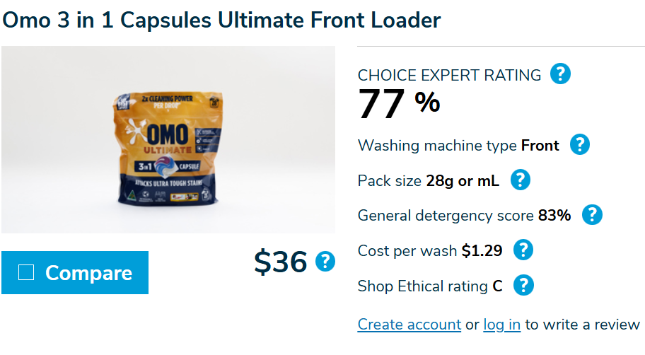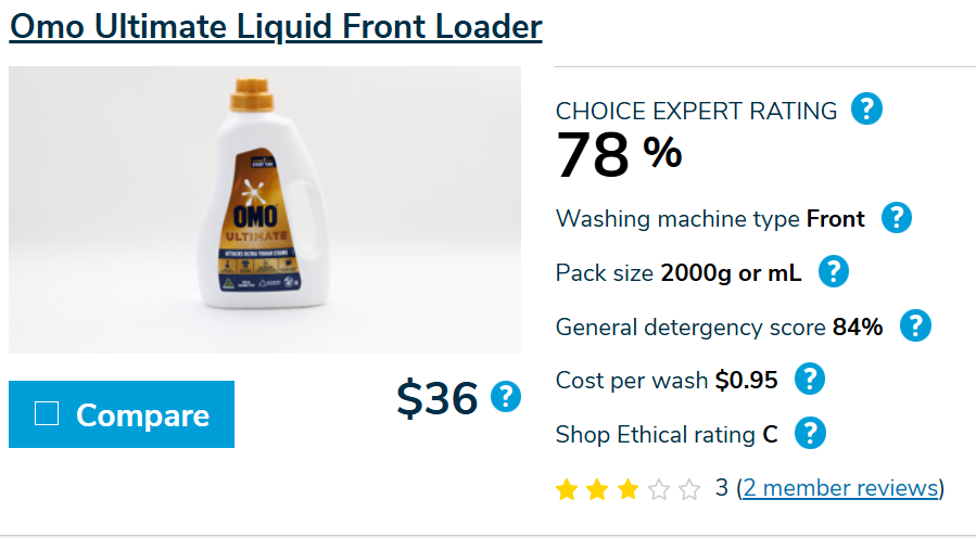 虽然Omo的产品大多得分很高,但每次洗衣成本通常在0.83澳元以上,有些小贵。
