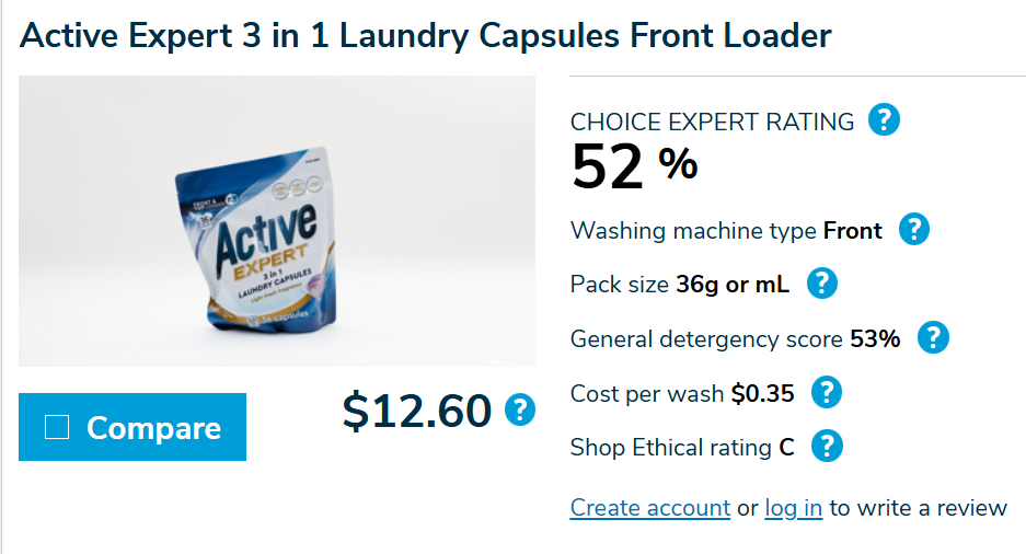 得分最低的Active Expert 3 in 1 laundry capsule仅得了52%,也就是说不合格。