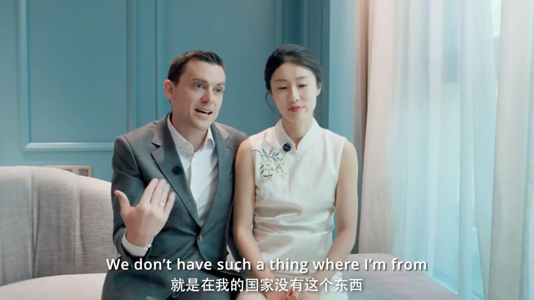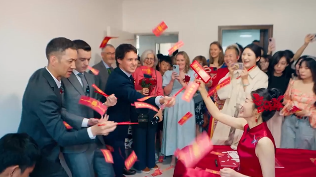 “中国的婚礼太有趣了,跟西方的仪式完全不一样,新郎要想方设法进入新娘的房间,完成各种挑战任务。”