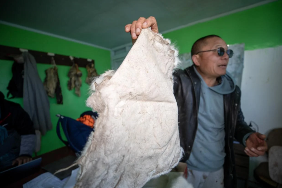 Zhi拿着一张小羊皮,他说这张小羊皮在海外奢侈品牌上能卖出高价。