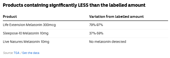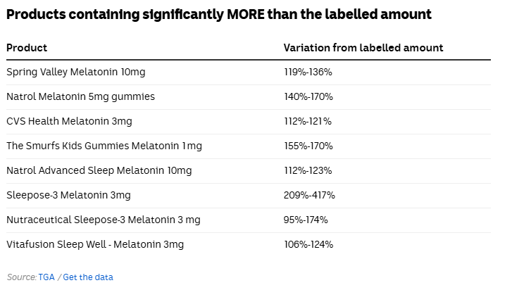 TGA表示,在检测的近十种海外购入的褪黑素产品中,几乎全部存在含量异常的问题。