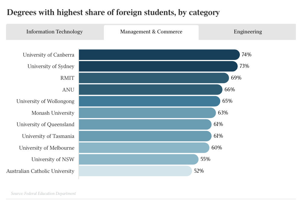 有些同学说墨大咋才60%?明明看过去都是亚洲人?没错!因为很多ABC、ABV啊!他们也喜欢读商科,并不是白人的澳洲人而已。