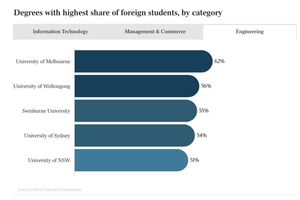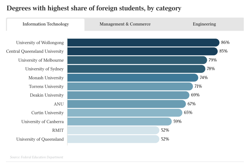墨大62%,卧龙岗大学56%,斯文本大学55%,悉尼大学54%,UNSW 51%!