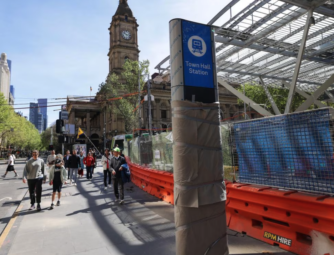 耗资155亿澳元、历时八年的墨尔本地铁隧道(Metro Tunnel)终于要开通了。其中核心站点Town Hall Station正式完工,部分站点将在12月进行“软启动”,全面运营要等到2026年2月才能实现。
