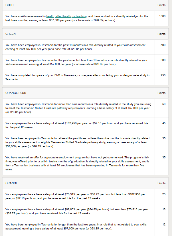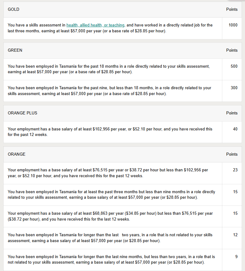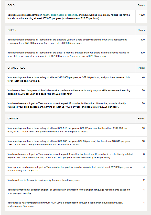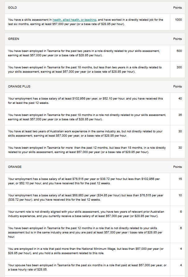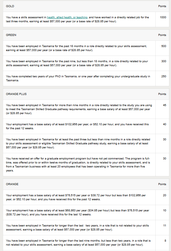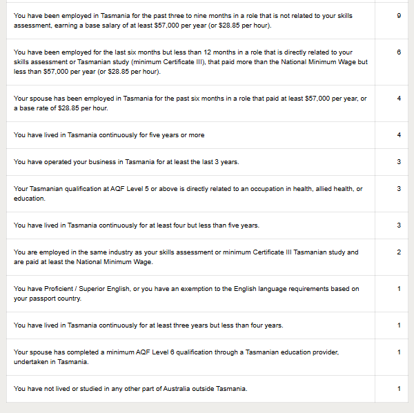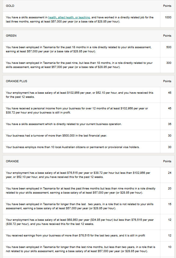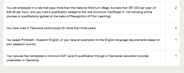 在过去两年内,为塔州本地公司工作至少已经工作12个月(每周不少于20小时),年薪要达到$57000澳币或$28.85/小时的时薪(不包含加班费或其他额外补助和loading)