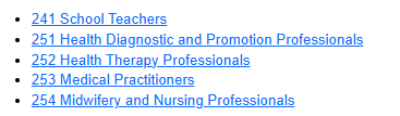需要有一个医护类或相关职位的职业评估,具体ANZSCO大类参考下面的列表已经获得一个塔州的Job offer,职位需要是和提名职位高度相关