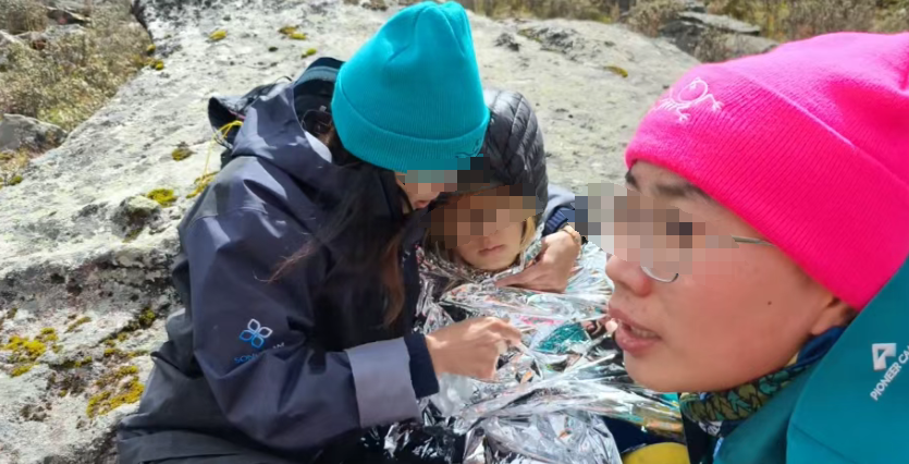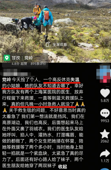 她们只是把女生挪到了一块相对显眼的大石头旁边,就自顾自地继续登山去了,把一个随时可能丧命的人,孤零零地丢在了4700米的山里。