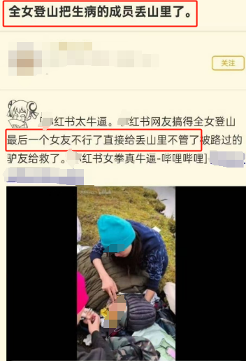收藏女生参加某红书“全女”登山队遇险,被姐妹丢下等死现场视频被扒太可怕!