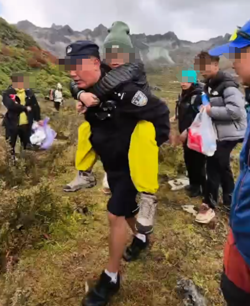 看到躺在地上的女生,民警没多说一句话,蹲下身就把女生背了起来,往山下走。