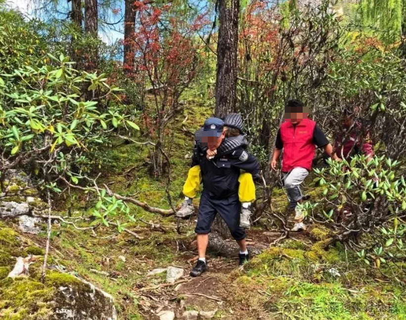 路上,由驴友们全程跟随护着,民警和当地的几位干部轮流交替着把女生背下去了。