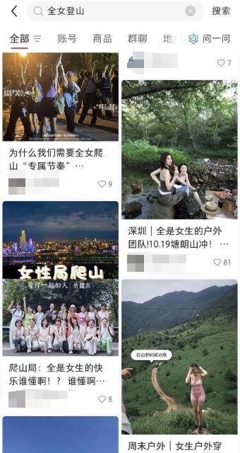 一位女生通过某红书约了“全女登山团”去徒步,