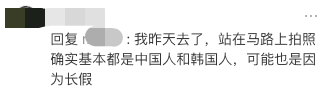 “我昨天去了,站在马路上拍照确实基本都是中国人和韩国人,可能也是因为长假。”