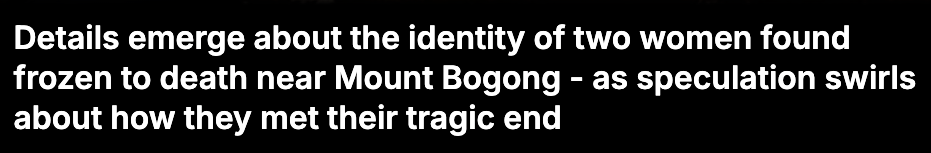 维多利亚州最高峰 Mount Bogong(博贡山)近日夺走了两名中国女游客的生命!