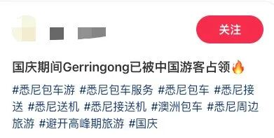 一名博主发贴称:国庆期间Gerringong已被中国游客占领!