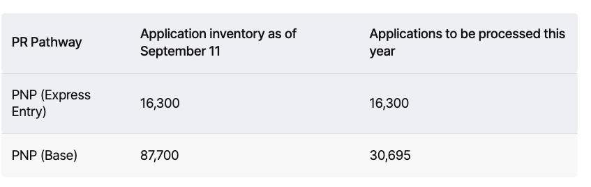 与“快速入境”EE系统衔接的 PNP 流程(也称为增强型 PNP 流程)将在 2025 年完成全部申请的处理,截止9月11日,省提名EE类别库存数量为16300人。