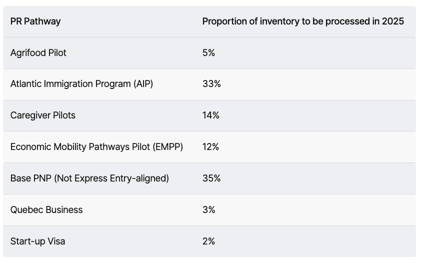 而与EE没关联的基本PNP类别将在 2025 年仅完成 35% 的申请的处理。