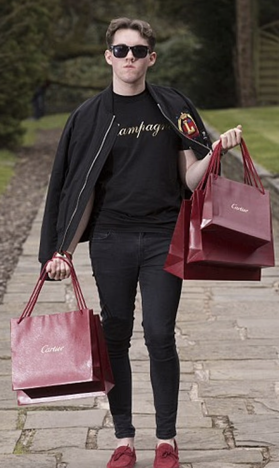 在节目里,他面不改色地吹嘘自己拥有价值170万英镑的超级跑车队,包括劳斯莱斯、宾利、奔驰等,还声称经常坐父亲的私人飞机,花50万英镑买宝格丽手表,住在带游泳池的豪宅里。