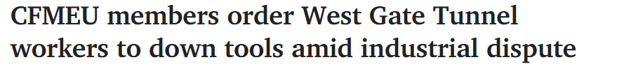 而如今John Holland选择与AWU合作,可能正是CFMEU“故意”停工其西门隧道的原因。