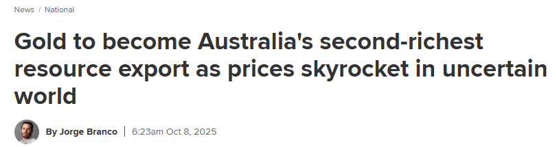 从2025年年初至今,黄金价格已经上涨了50%,在其他出口资源并不景气的当下,黄金有望在本财政年为澳洲创造130亿澳币的收益。