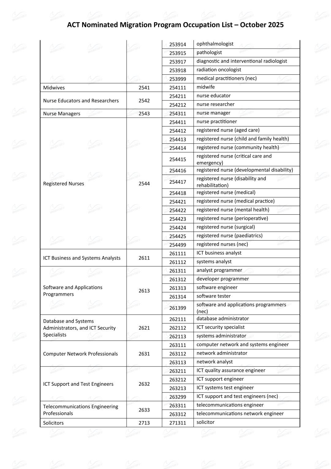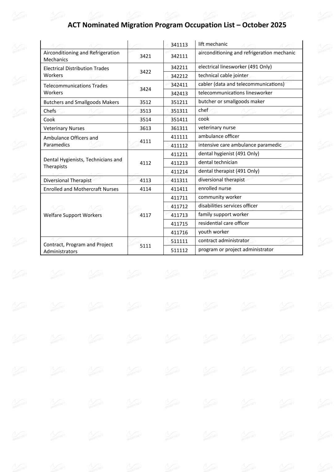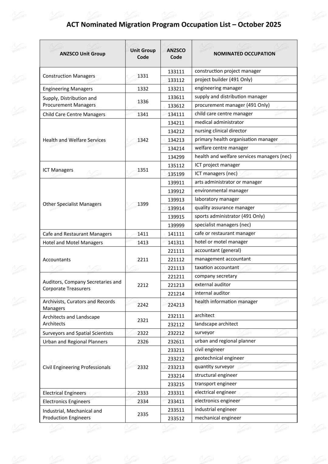 1. 职业在最新的ACT Nominated Migration Program Occupation List上