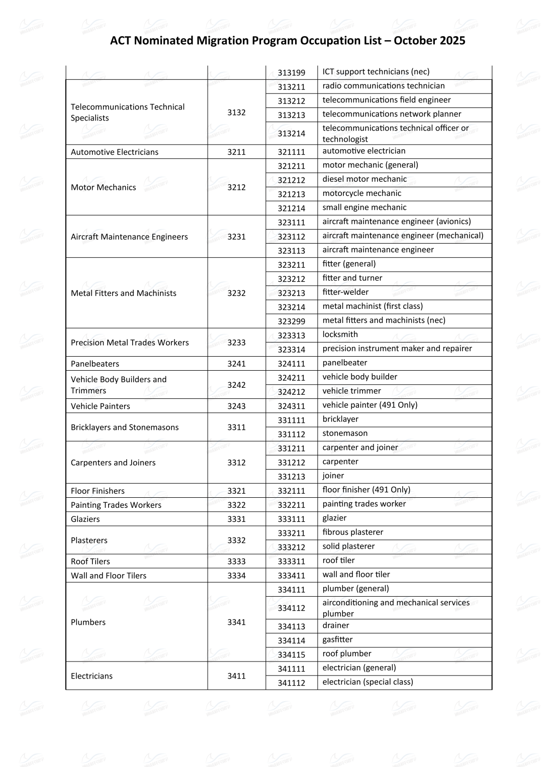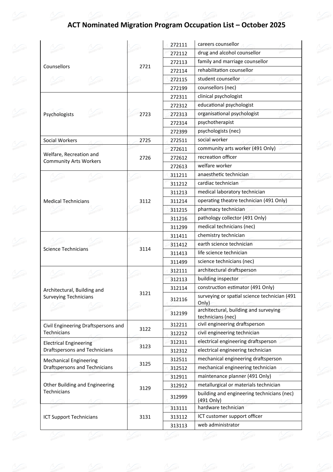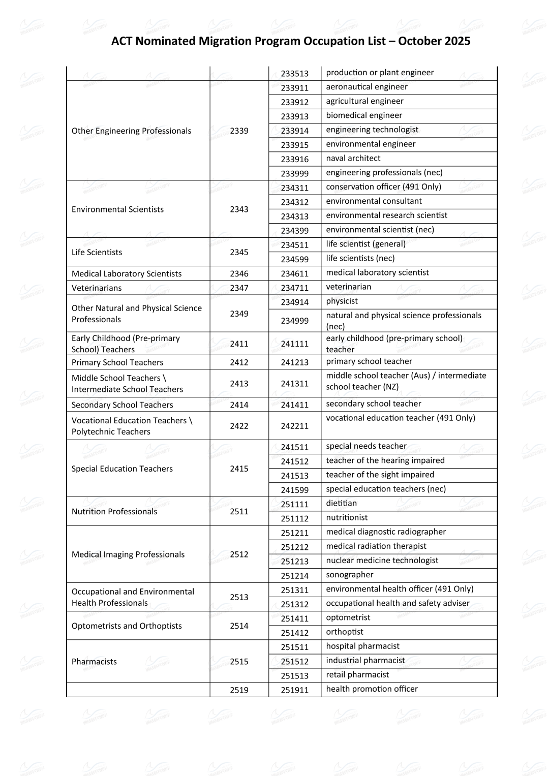 1. 职业在最新的ACT Nominated Migration Program Occupation List上