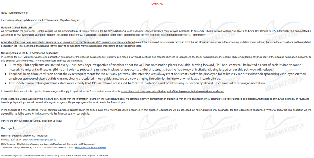 1. Critical List改名为 ACT Nominated Migration Program Occupation list,从152个职位减少到105个职位,如果不在清单上的职位不会收到邀请
