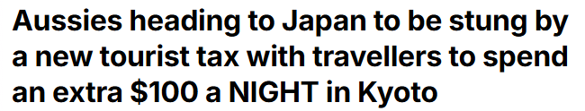 不过值得注意的是,不仅未来前往日本需缴纳酒店税,澳人以后前往美国等热门目的地也需承担更高的入境费用!