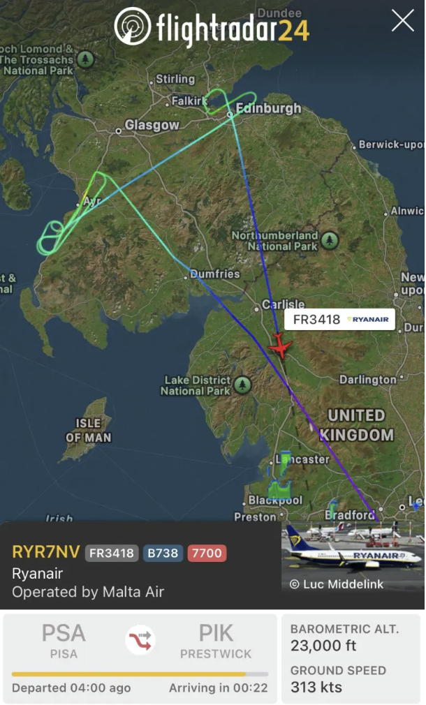 没错,飞机油不够已经很危险了,塔台原本指示机场迫降在普雷斯蒂克机场,但当时苏格兰正在受到“艾米风暴”肆虐,风速高达每小时160公里,导致多地航班、铁路与渡轮停运。