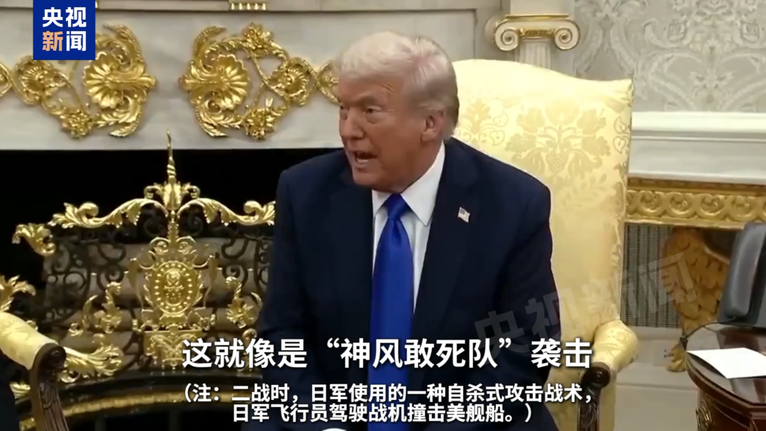 特朗普表示,此次政府停摆,是由民主党导致的。特朗普使用“神风特攻队”来形容民主党人的行为,意在指责民主党阻碍国会通过拨款法案,导致政府停摆是“自杀式”举动。