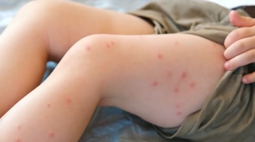 出疹期(发病3-4天后):红色斑疹从脸部开始,逐渐蔓延至颈部、躯干、四肢,无瘙痒感,伴随体温升至 39-40℃,持续4-7天;