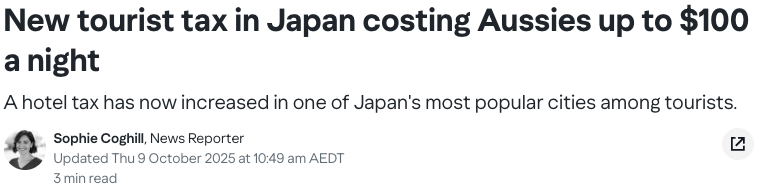 也就是说,如果你想在京都享受奢华旅程,可能得多掏出一张百元澳币。而对于普通游客来说,这笔钱虽然不算太多,但也足够多喝几杯抹茶拿铁、再买点伴手礼了。