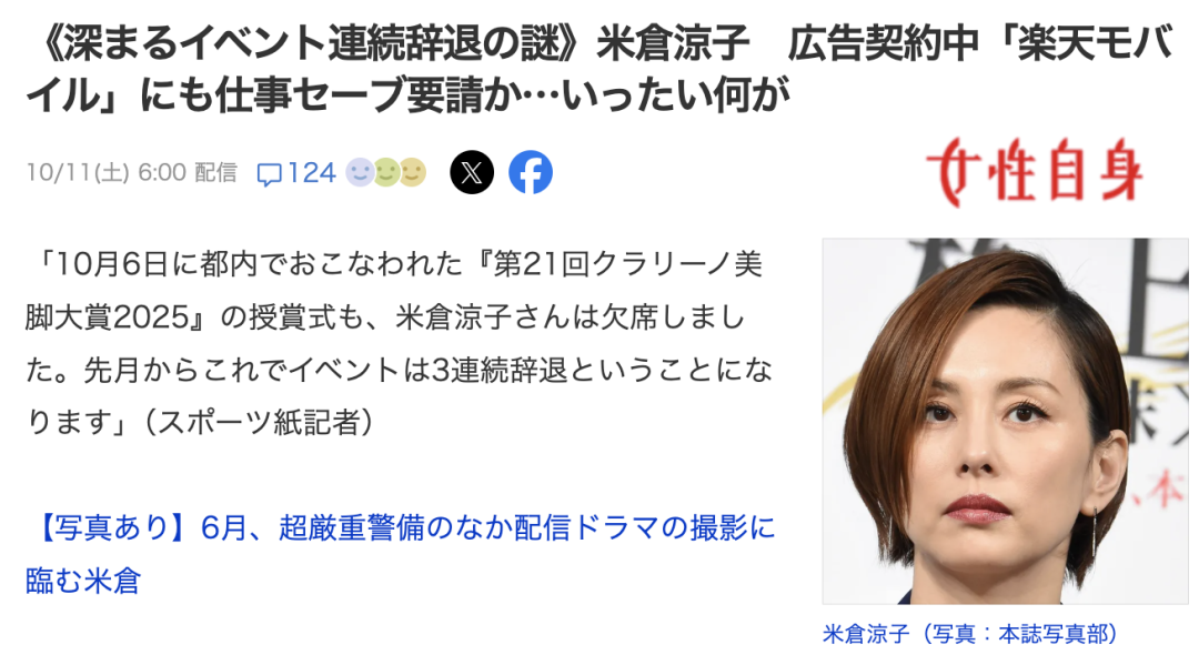 现在米仓凉子,同样的套路,失踪、取消活动、暴瘦。日本明星塌房的标准流程…