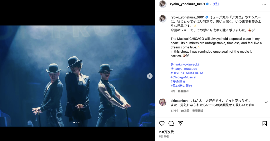 可今年8月2日到3日,米仓在舞台剧《RYOKO YONEKURA ─DISFRUTA DISFRUTA─》中展现了一种全面复出的状态,还在Instagram上连日发布演出感想,勤奋营业…