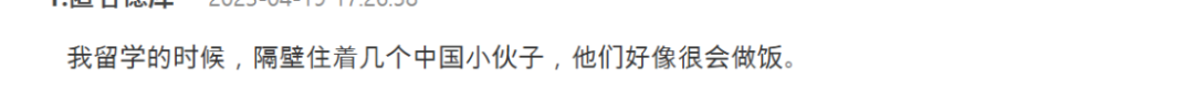 起因是有人晒了一张“中男团体聚餐做饭”的照片:几位中国男生在厨房忙前忙后,场面堪比小型厨艺大赛。评论区瞬间炸锅——不少网友纷纷晒出自己被中国朋友投喂的经历,并表示: