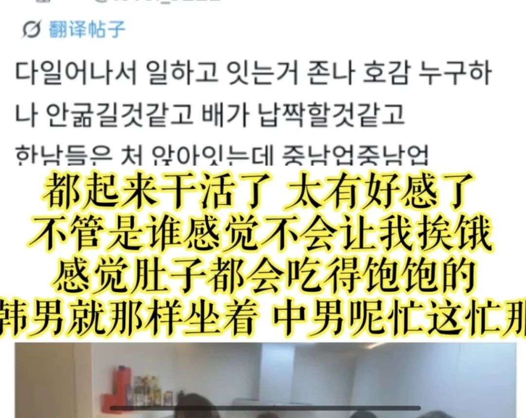 除了厨艺,让韩国网友惊讶的点还有,“男人也会下厨”?还有人专门发帖提问:为什么中国电视剧里常见男人买菜做饭,现实里是不是大多数中国男生也擅长下厨?