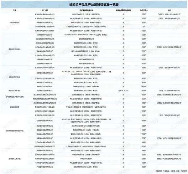 收藏主销的8类产品中,娃哈哈集团仅持有天然水工厂股份,多家生产公司已将公司名中的“娃哈哈”字样剔除