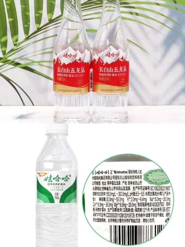 娃哈哈天然矿泉水分为绿瓶和红瓶两种,水源地均为长白山五龙泉。