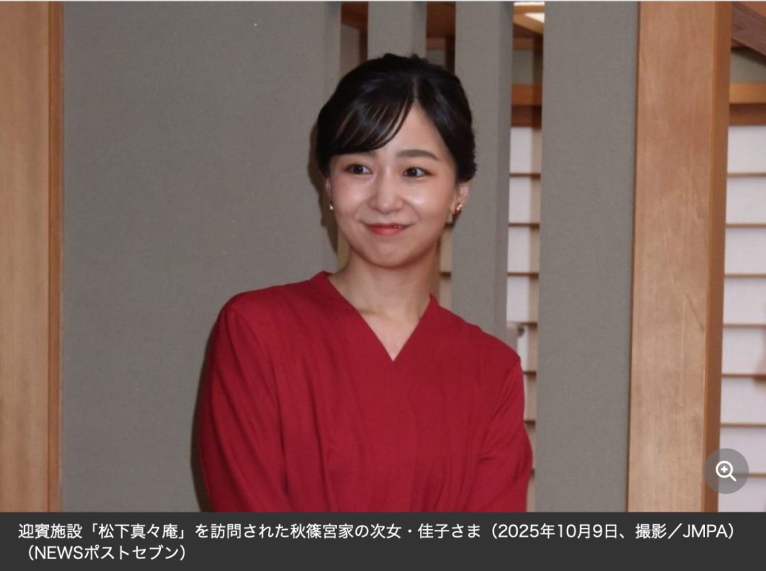 10月9日,她在京都市出席公务活动,佩戴的红色发饰是京都当地某品牌用“西阵织”制作的饰品,售价为3850日元(含税)。截至10月11日,佳子公主同款的红色发饰显示“已售罄”。