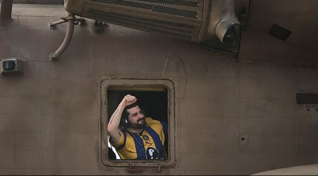 在特拉维夫及全国各地,人们守在广场和大屏幕前,等待解救消息。当电视宣布人质名单时,人群爆发出欢呼。直升机从夜空掠过,运送获释人质的航线被实时转播,成千上万以色列人挥舞国旗迎接这一刻。