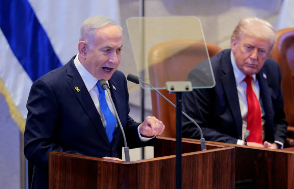 在以色列议会内,部分议员戴着印有“和平总统川普”字样的红帽子。内塔尼亚胡称川普是“以色列在白宫中最伟大的朋友”,并表示:“我们将共同实现这份和平。”