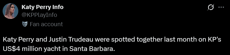 收藏凯蒂·佩里和加拿大帅哥前总理船上激吻被拍,他的前妻发文,耐人寻味...