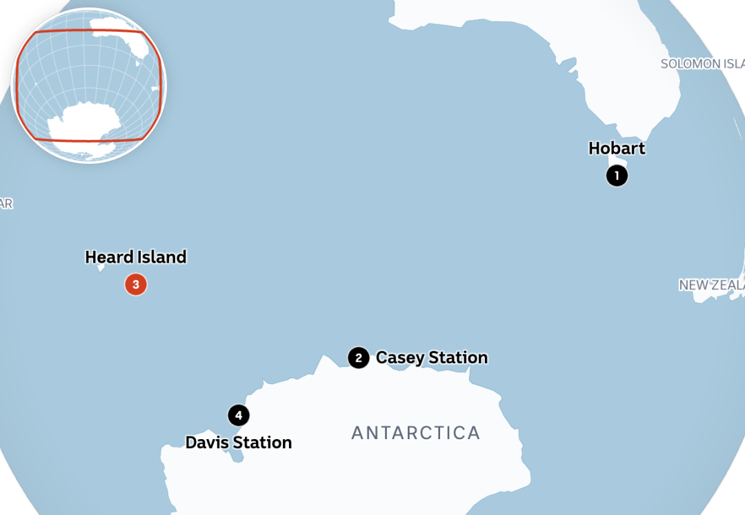 几天前,船队抵达了偏远的赫德岛(Heard Island),这是澳大利亚最孤立的领地之一。