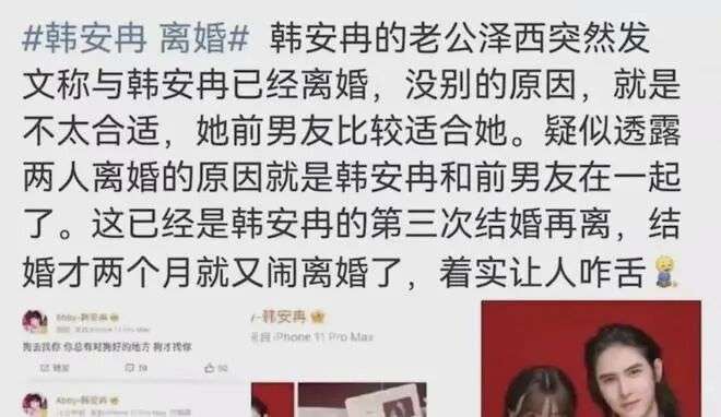 很快,韩安冉又迎来了她的第三段婚姻。
