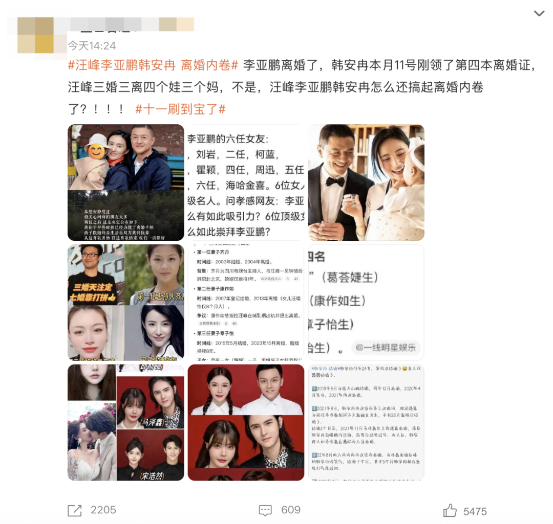 回头再来看看李亚鹏官宣离婚后,#汪峰李亚鹏韩安冉 离婚内卷# 的词条上了热搜。