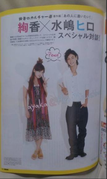 不仅如此,在感情生活方面,2008年6月的时候,水嶋宏通过《mini》杂志策划的对谈特辑,和歌手绚香相识。